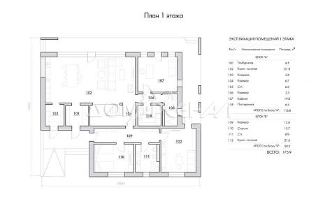 - Общая площадь строений 600 кв.м (площадь дома 370 кв.м, с террасами - 485 кв.м, + хозяйственные помещения - 115 кв.м)
