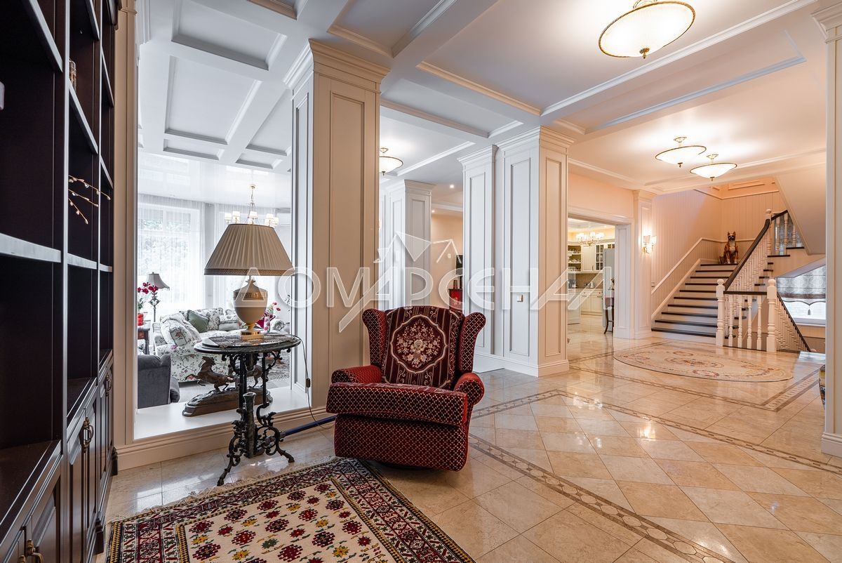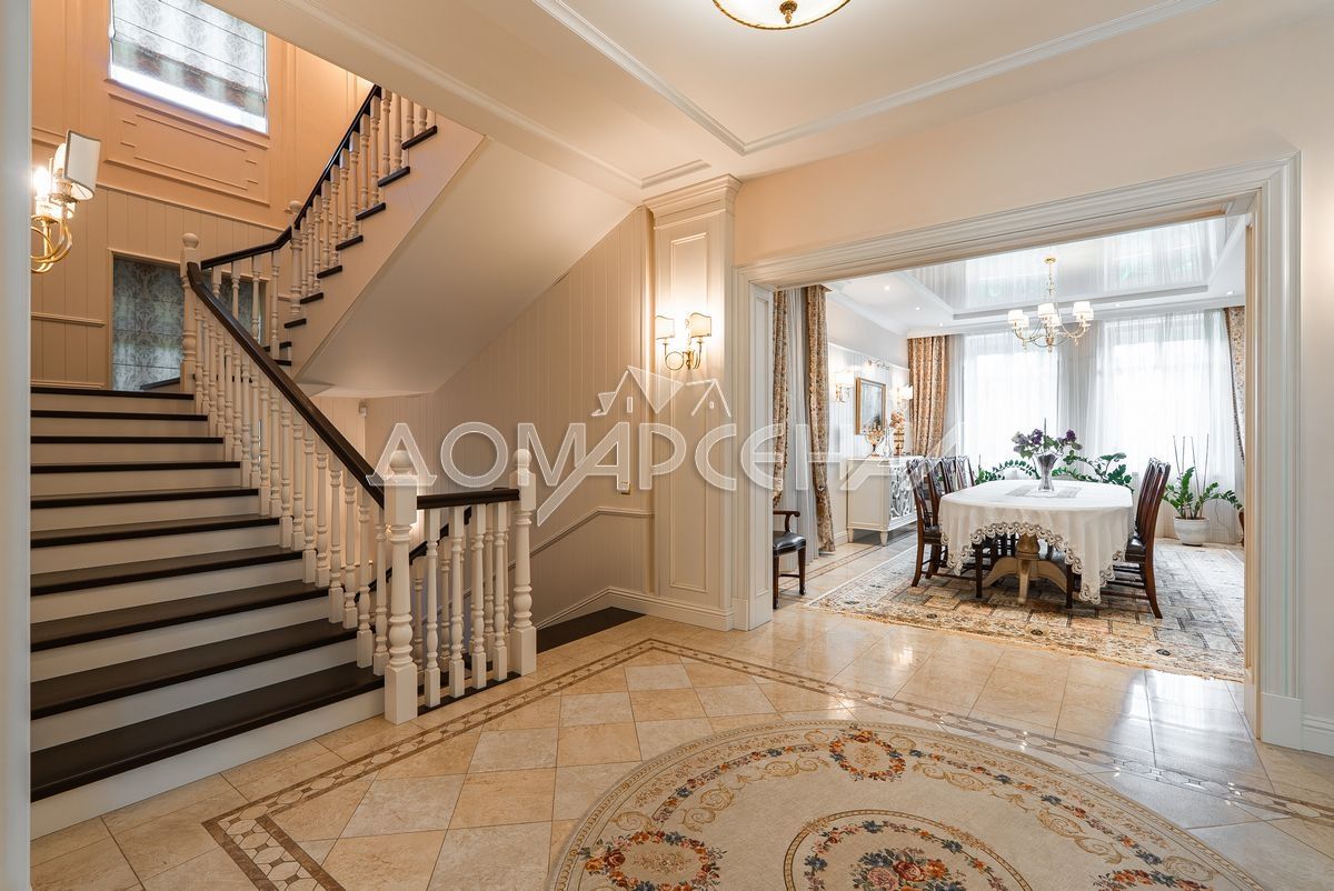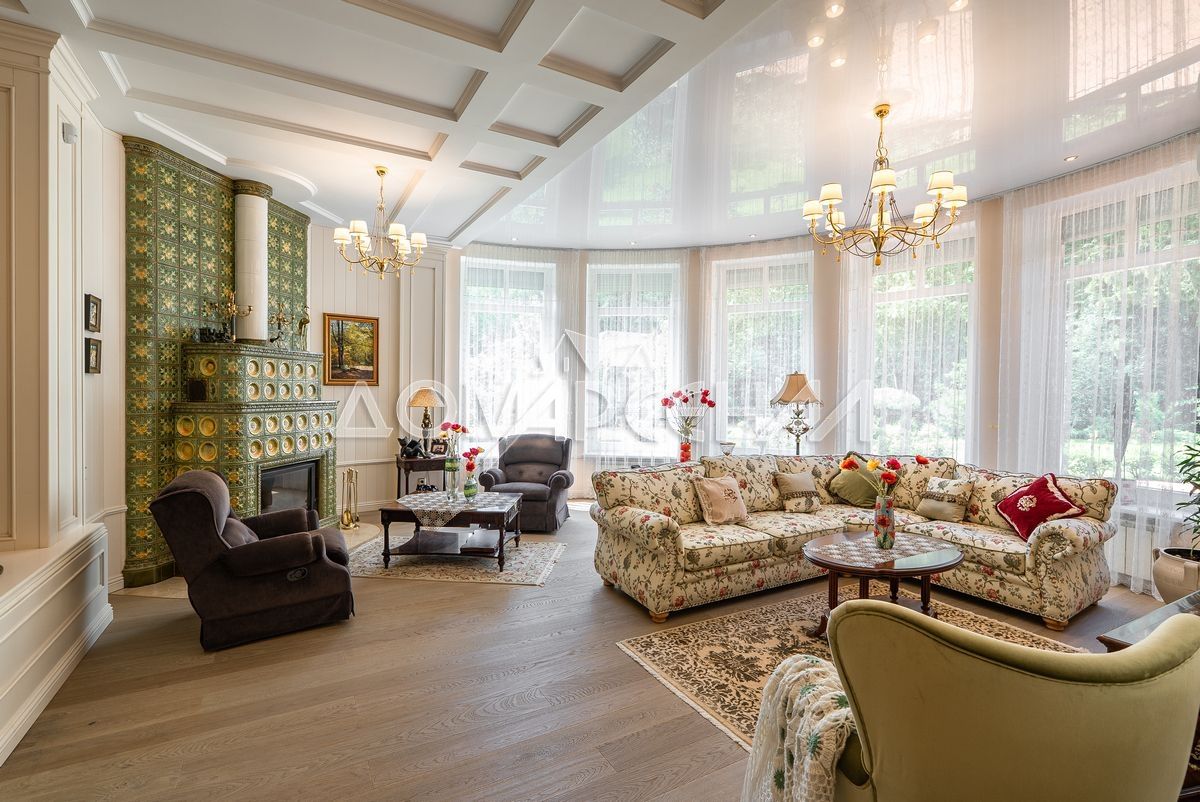 - Основная идея дизайна интерьера в стиле французского прованса поддерживается мебелью и дверями из массива дерева ручной работы, кухня от известной итальянской фабрики, камин в гостиной обложен изразцами и является произведением искусства ярославских мастеров
