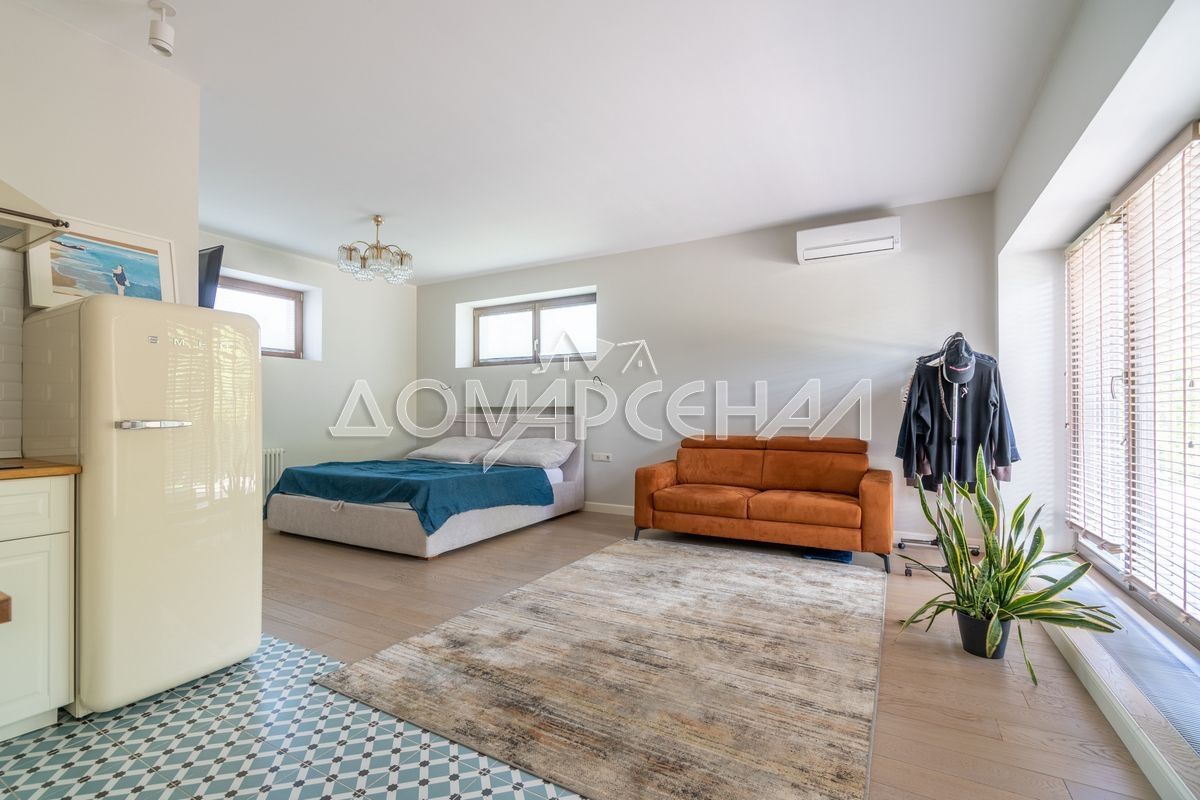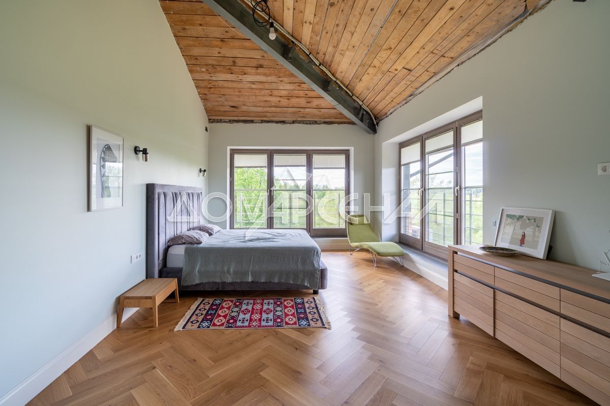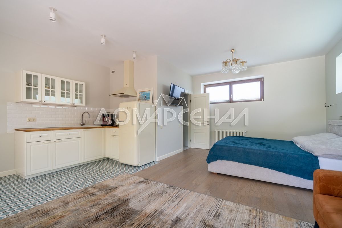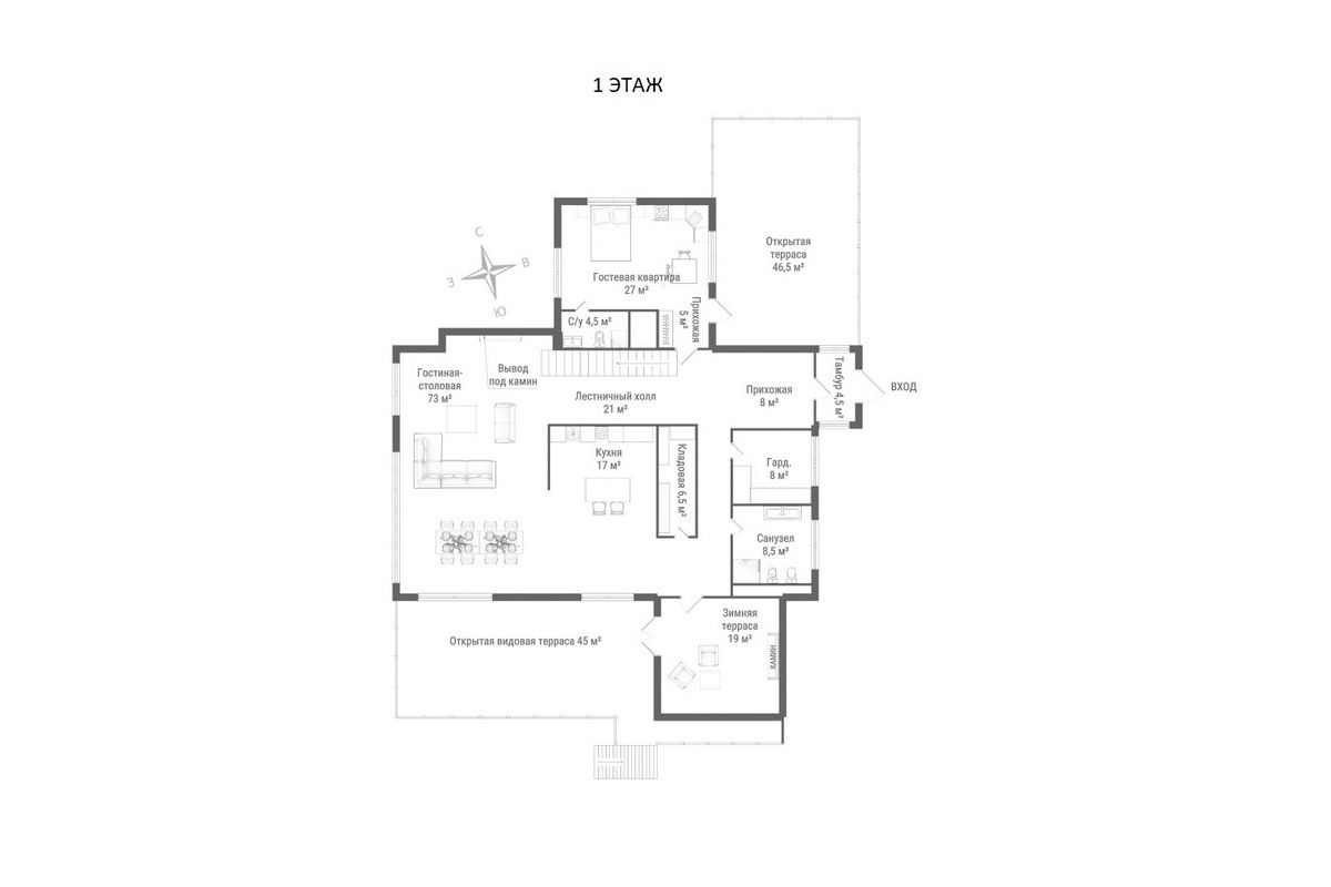 - Изолированный (гостевой) блок со своей кухней, спальней, санузлом и панорамным оконным проёмом для выхода на террасу перед домом
