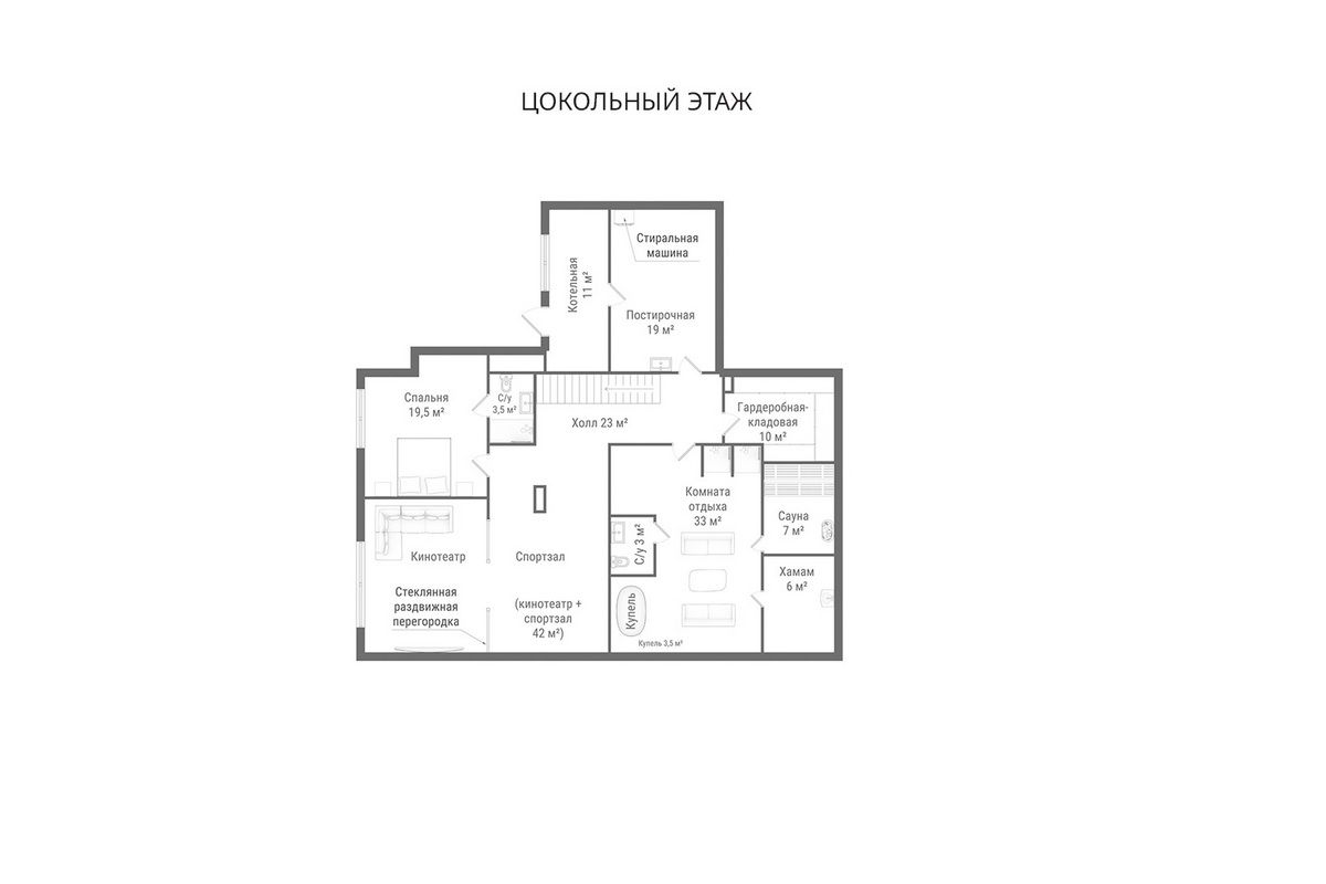 - Помещения с подготовкой под сауну и хамам, купель