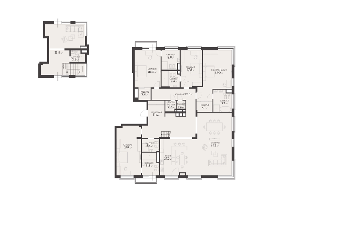 - Просторная четырехкомнатная квартира на последнем этаже в клубном поселке, созданном для настоящей жизни