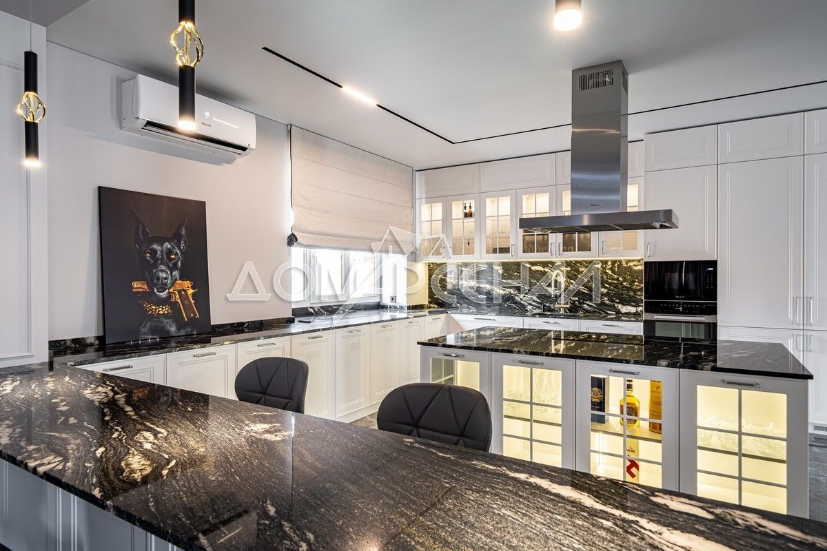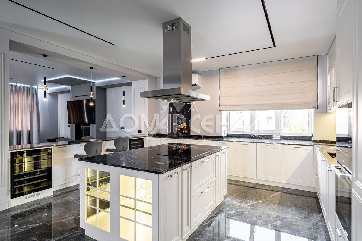 - Новый дом с дизайнерской отделкой и мебелью «под ключ», площадью 1295 м² расположен на участке 10 соток и создаёт гармоничное пространство для комфортной жизни большой семьи