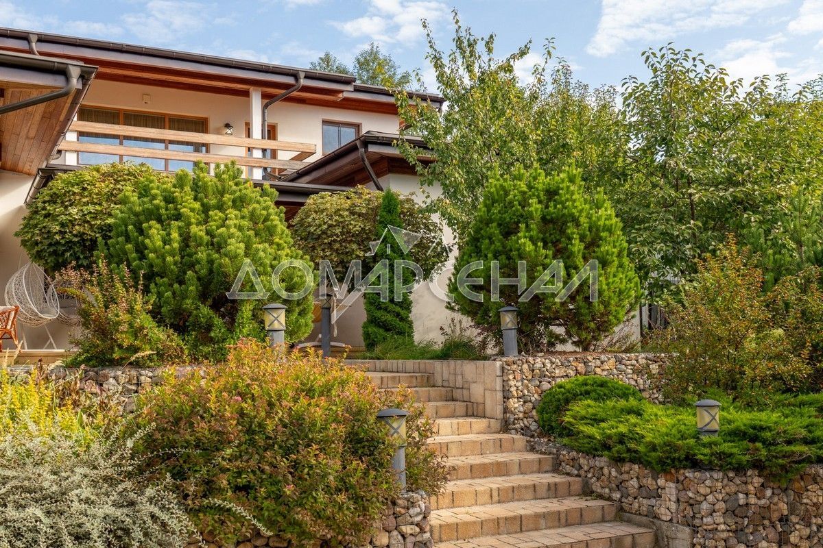 - Дом расположен на двухуровневом прилесном участке с парковым ландшафтом с лесными и плодовыми деревьями, кустарниками, габионом, просторной парковкой