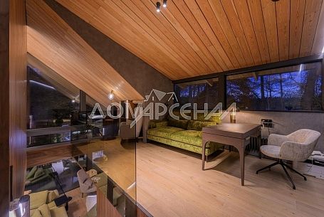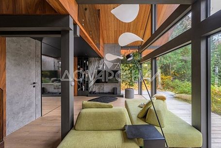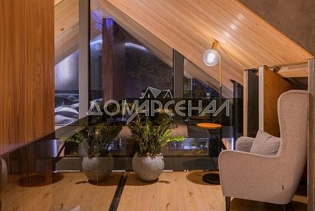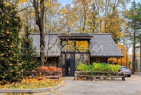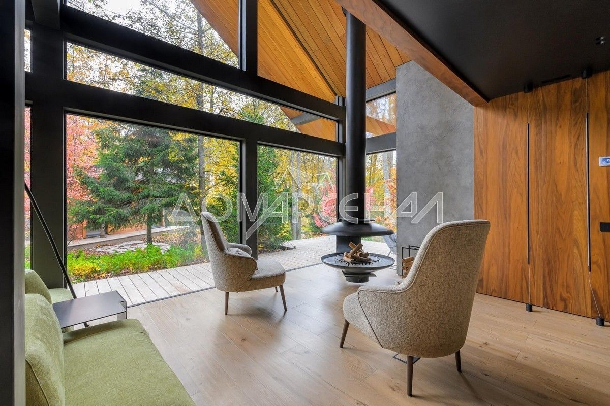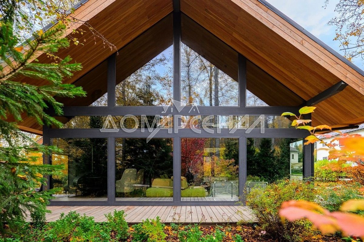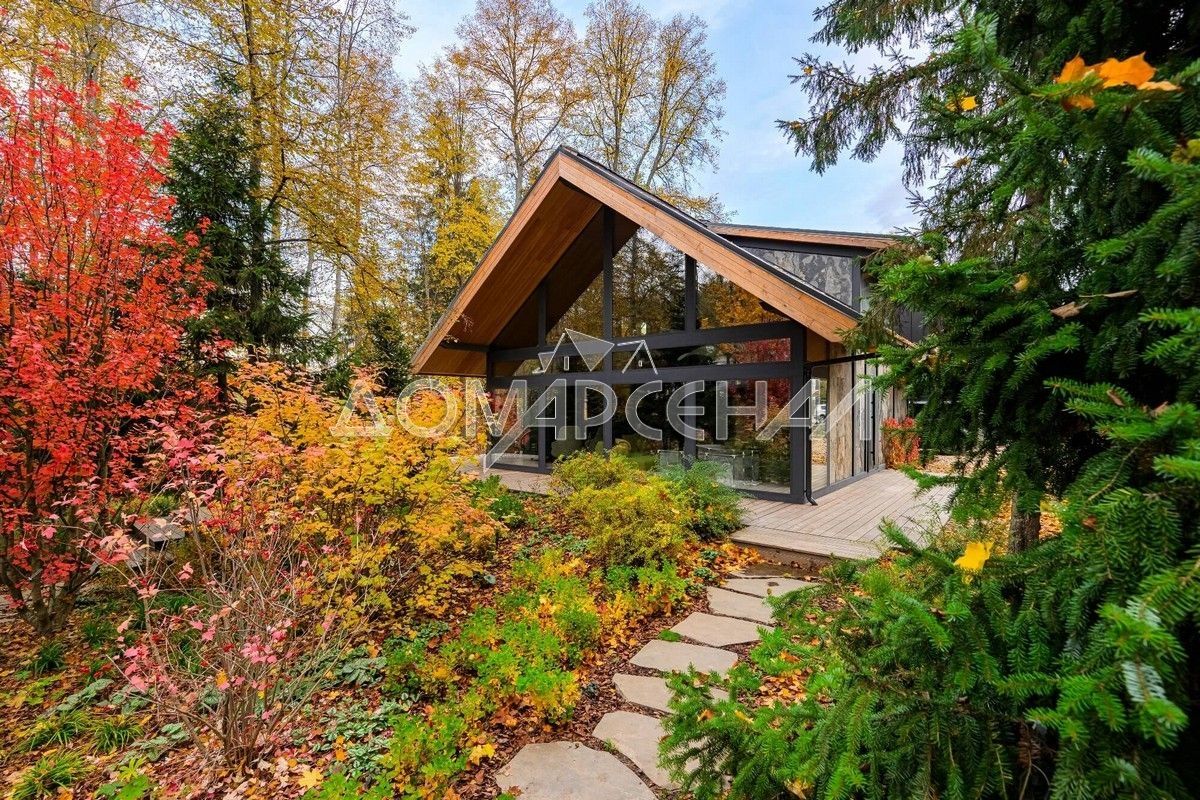 - Уютный фахверк для постоянного проживания в скандинавском стиле с большим панорамным остеклением на лесном благоустроенном участке 20 соток в коттеджном поселке Новолеоново