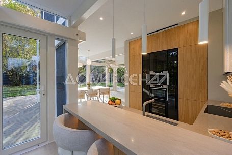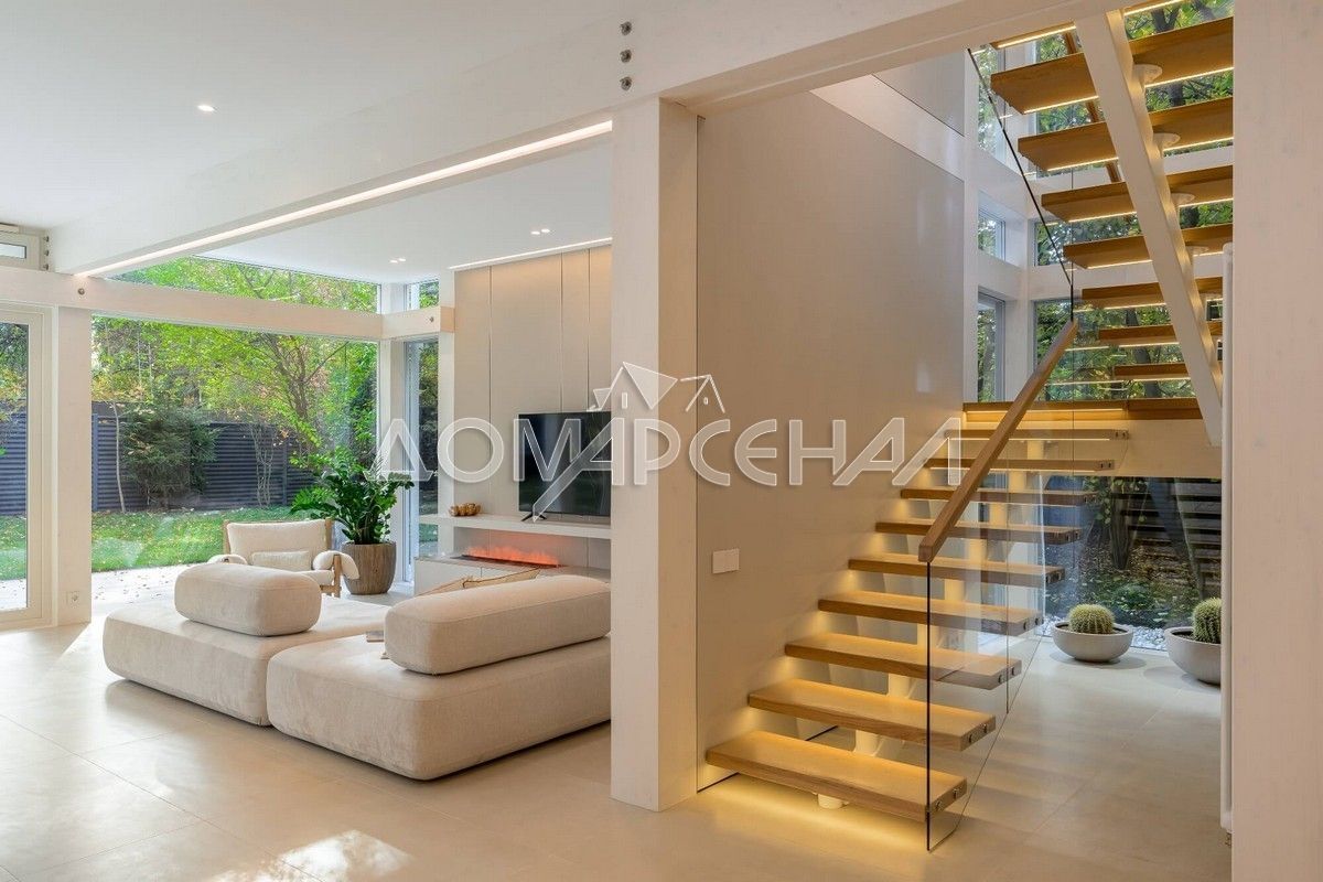 - Особенности проекта: стеклянные стены от пола до потолка, потрясающие виды на собственный сад, высокие потолки, высококачественная отделка, эксклюзивное цветовое решение стен, монолитное межэтажное перекрытие и как следствие - отсутствие «торчащих» батарей и межкомнатные стены из пазогребневых блоков