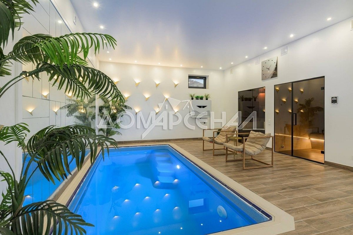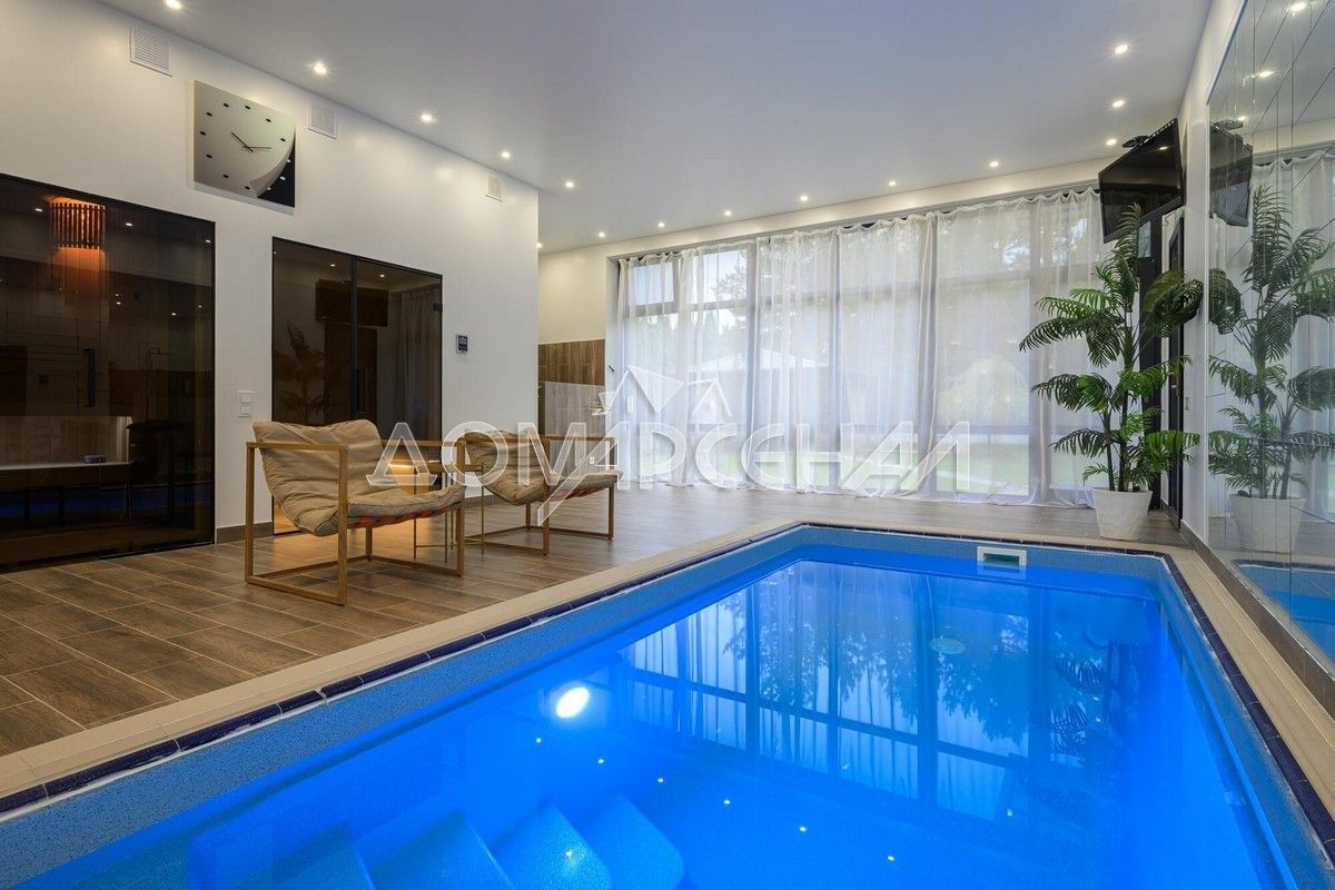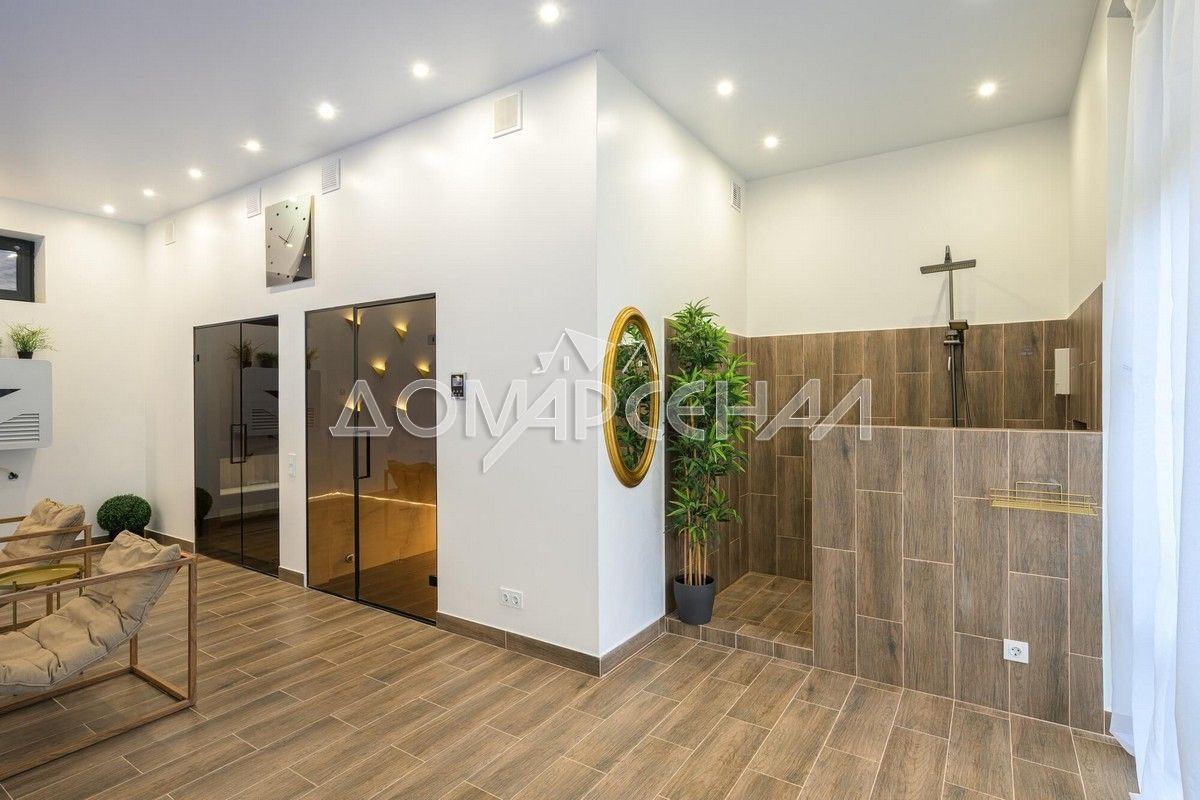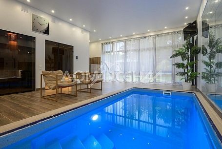 - В доме: 3 спальни, просторная гостиная с камином и выходом на крытую террасу, кухня-столовая с каменным островом, спа-зона с бассейном 3х5 м, финской сауной и хаммамом, кабинет, который по желанию можно трансформировать в гостевую спальню, холл с огромным витражным окном на 2 этажа с прекрасным видом на хвойники, котельная и постирочная.
