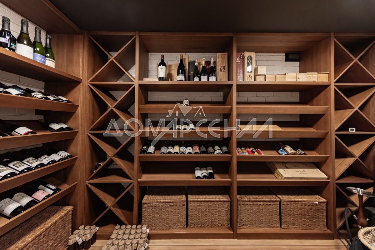 - Площадь основного дома: 325 м², продуманное зонирование на 2 блока, соединенные стеклянной галереей. В доме 5 спален и 5 санузлов, а так же кладовая и винный погреб на 800 бутылок