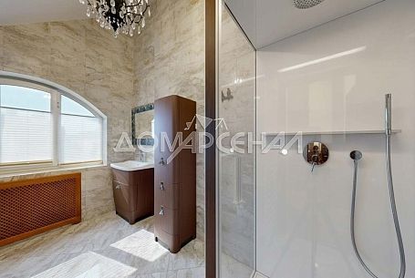 - В таунхаусе установлена система климат-контроля, мансардные окна на пультах управления, полы с водяным подогревом под мрамором и керамогранитом, система охранной сигнализации и видеонаблюдения