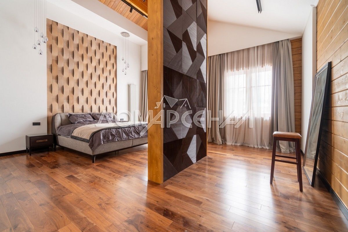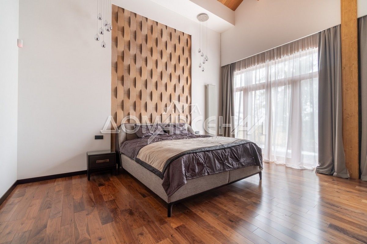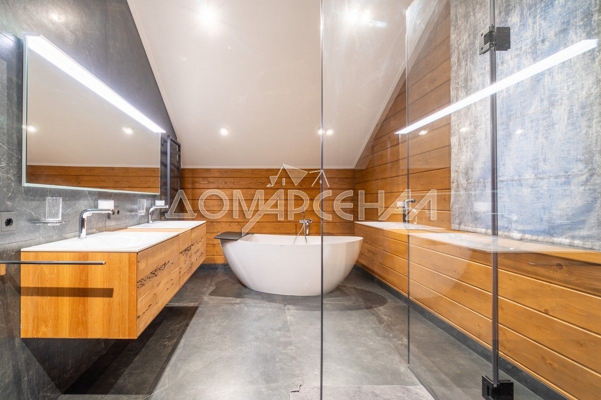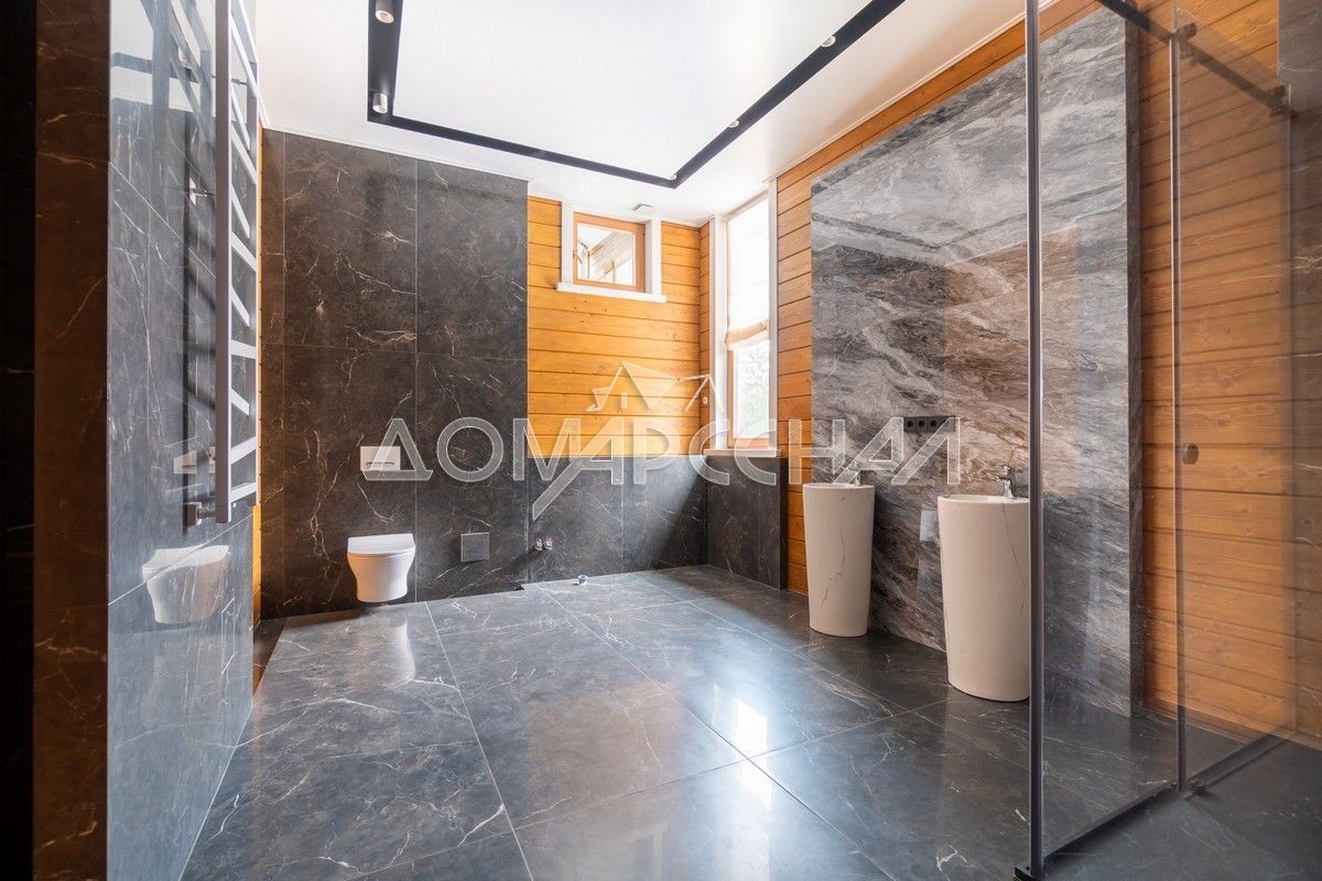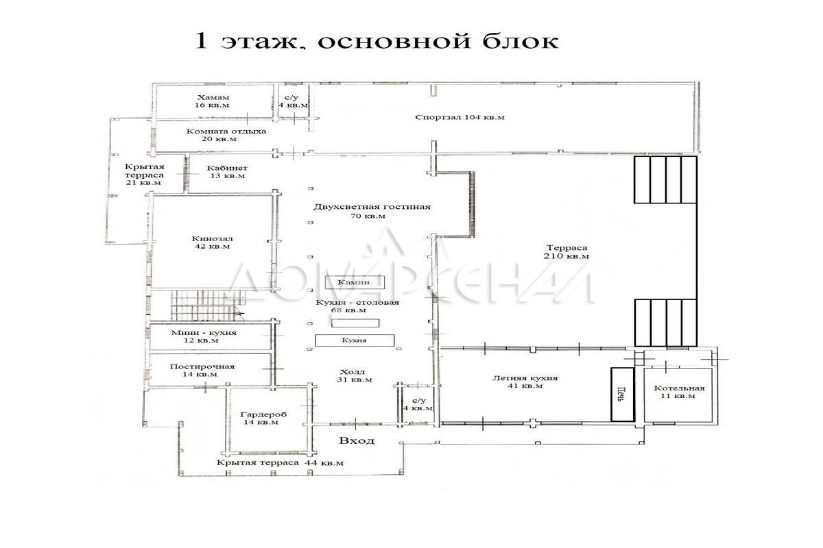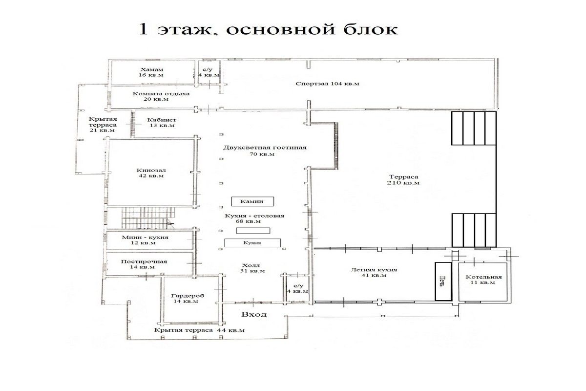 - В планировке: гостиная со вторым светом, кинозал с экраном 135″, летняя кухня с печью, спортзал, хамам, баня, купель на террасе