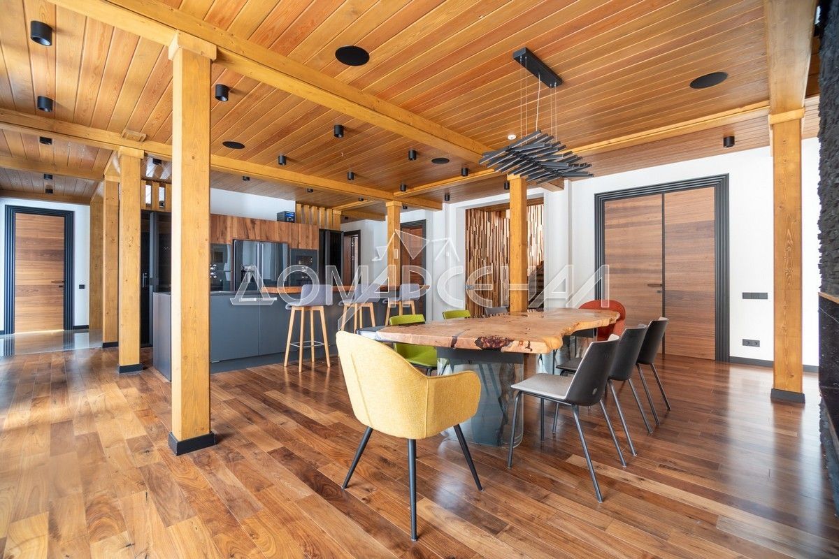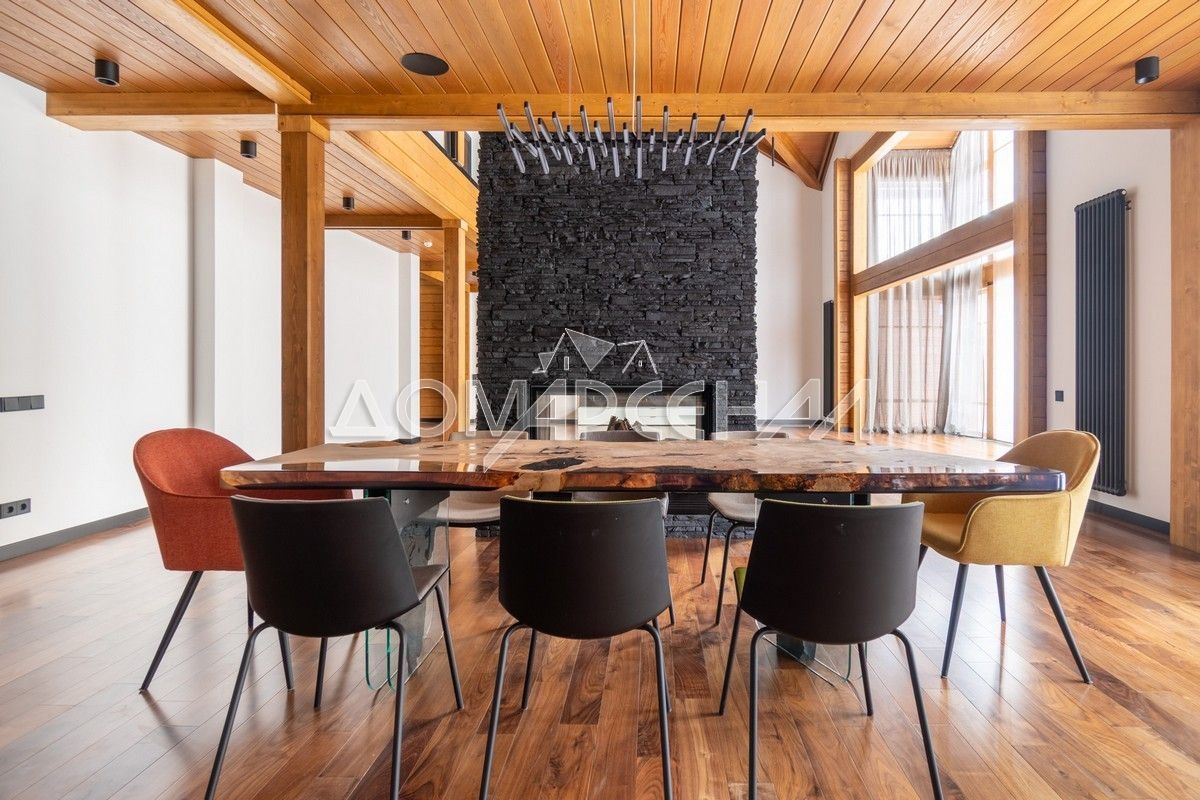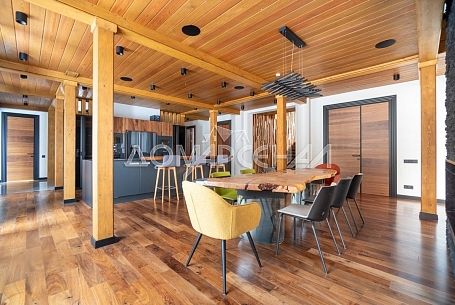 - Высокие потолки, большая площадь остекления и декоративные детали из ценных пород дерева создают атмосферу простора и уюта