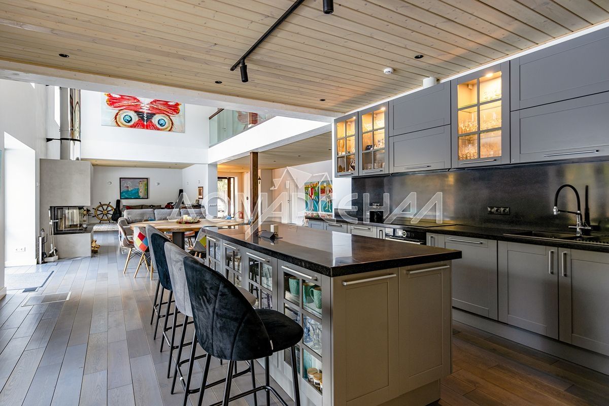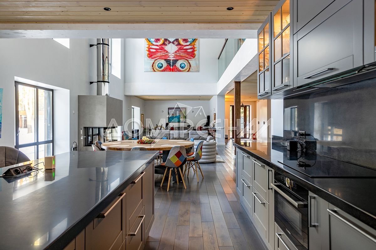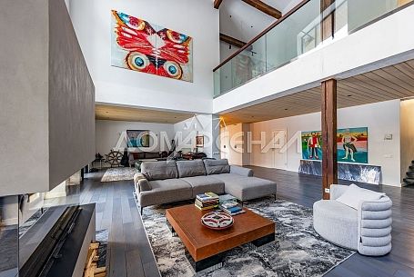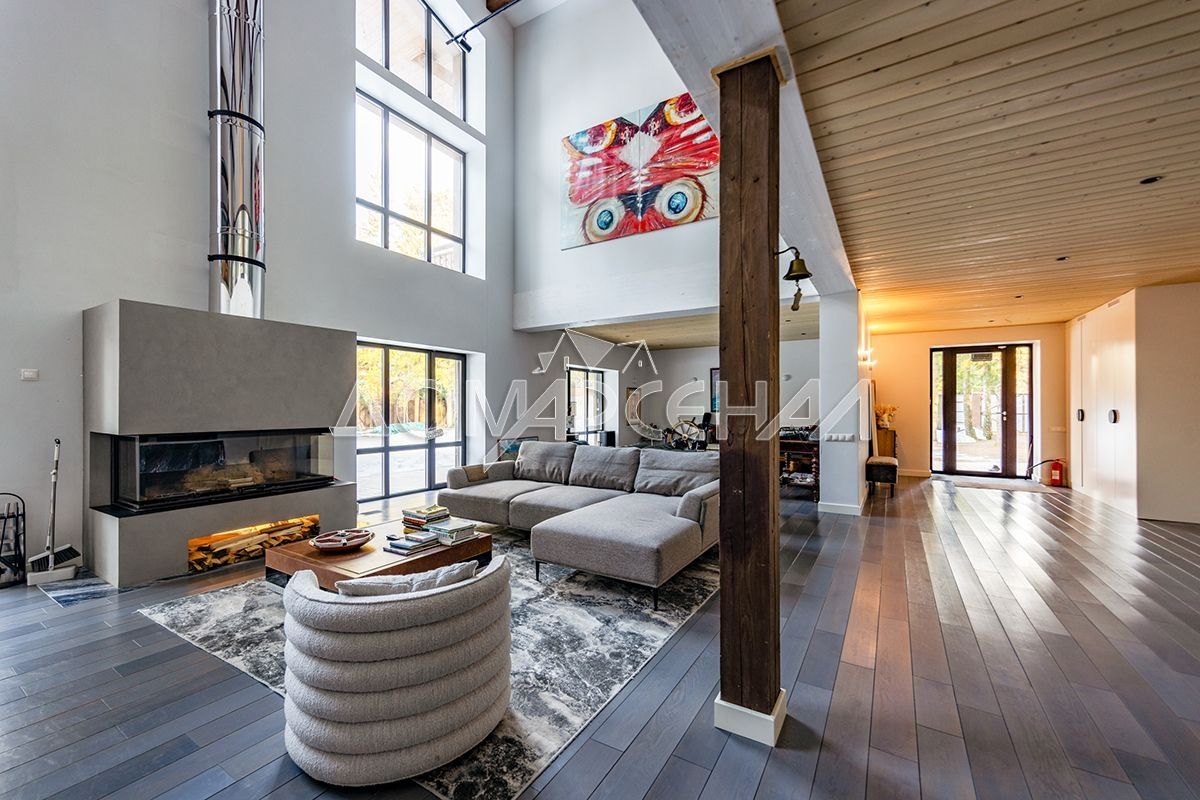 - Гостиная с высотой второго света 9 метров