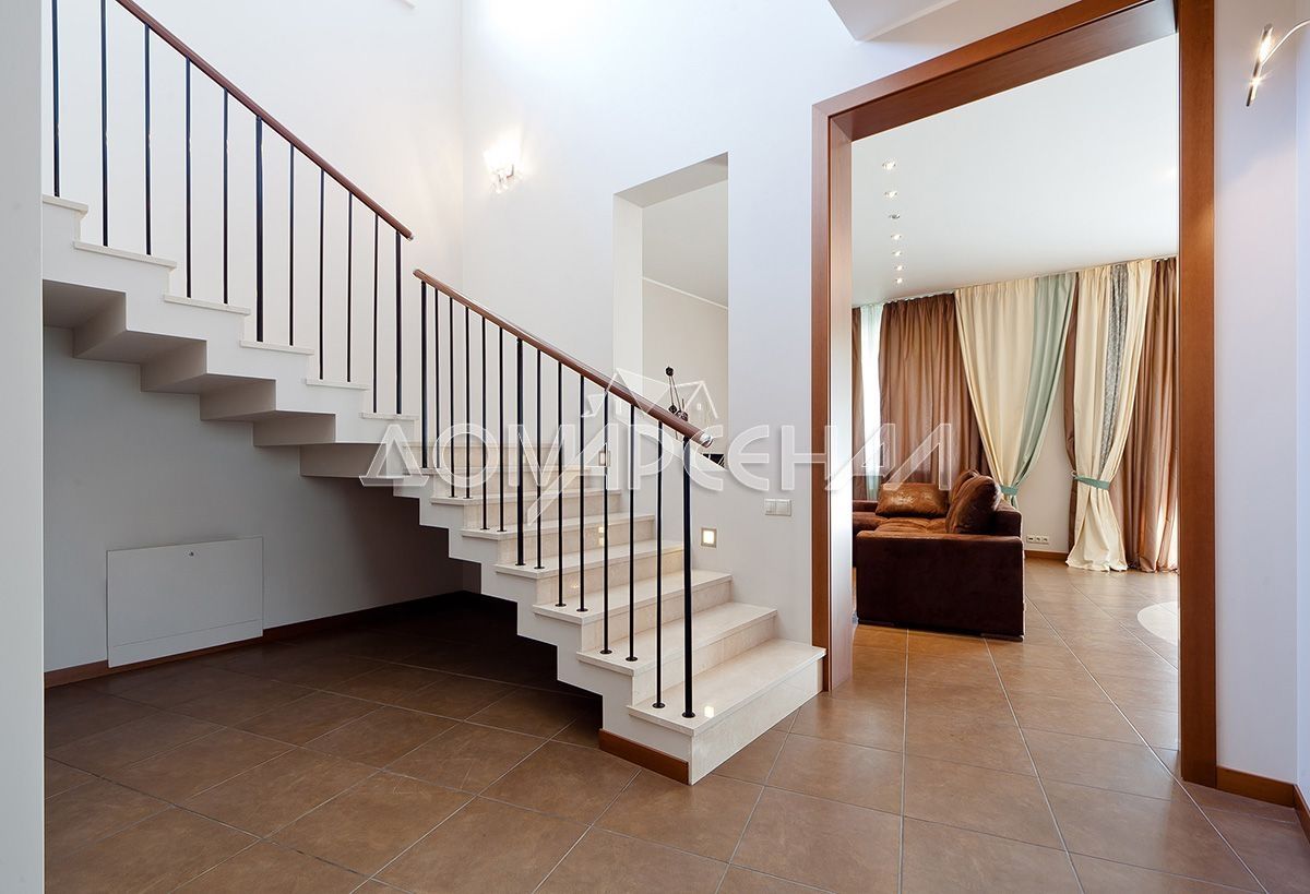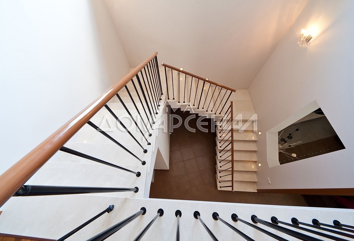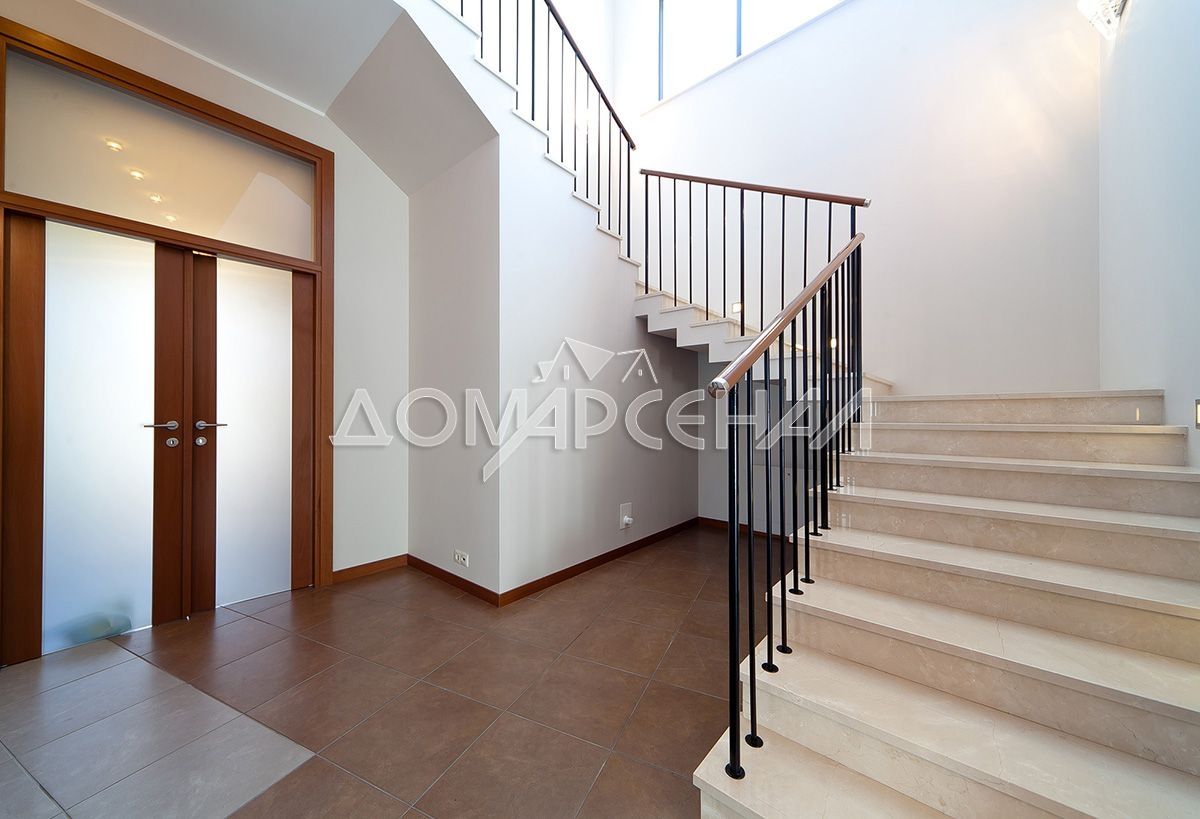 - Двери: Alfa (Италия) - шпон вишни, скрытые петли, магнитные замки. Лестница облицована цельными ступенями и подступеньками из мрамора Crema Marfil, ограждение – массив бука