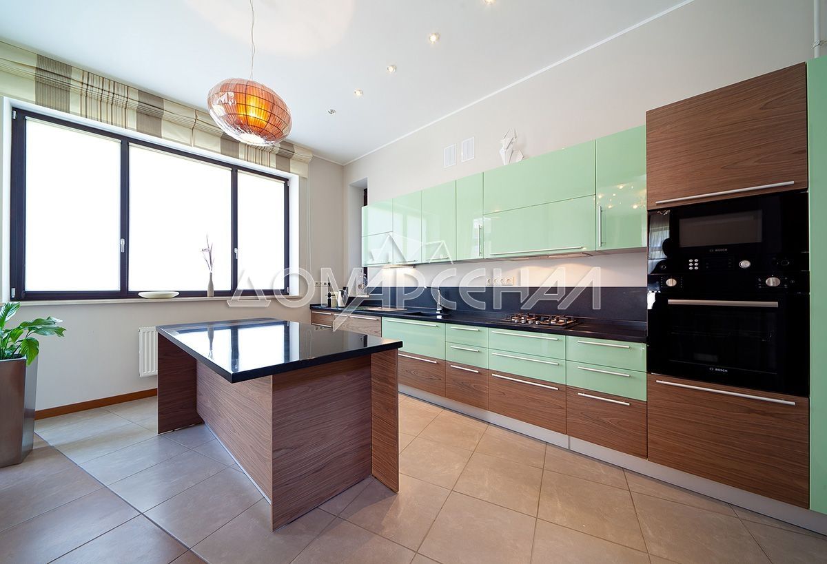 - Кухня с панорамными окнами в пол и выходом на террасу. Окна расширяют пространство и открывают прекрасный вид на участок, а выход на террасу создает возможность расположить на ней обеденную зону в теплое время года